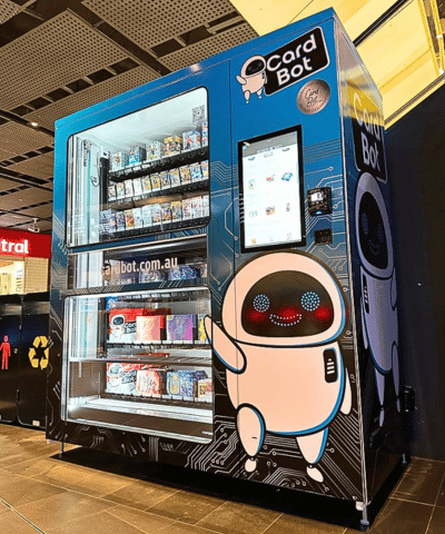 Discover a new way to enjoy your favourite trading cards with our Card Bot Machines! Offering a broad array of trading cards, each machine is equipped with a custom elevator and an interactive touchscreen to enhance your shopping experience. After a successful launch in Melbourne, we're excited to bring our Card Bot Machines to locations across Australia. Keep an eye out - a Card Bot could be coming to a shopping centre near you soon!