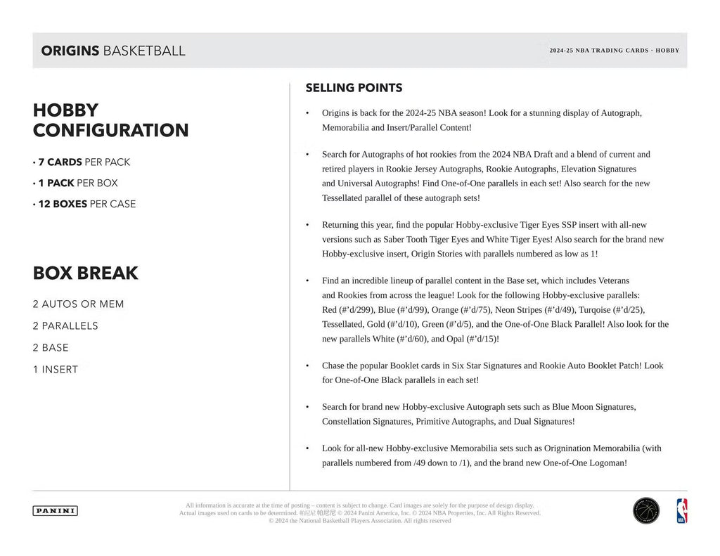 Origins is back for the 2024-25 NBA season! Look for a stunning display of Autograph, Memorabilia and Insert/Parallel Content!