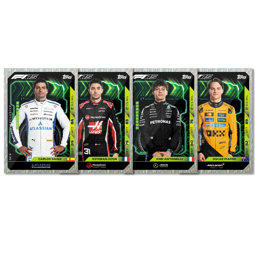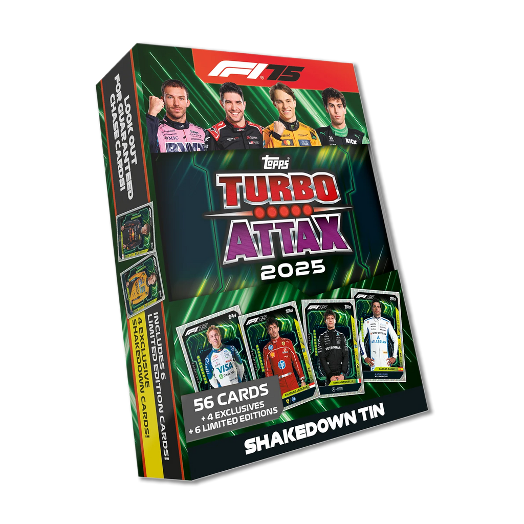 Topps Turbo Attax 2025 races back for another jam-packed season of collecting with over 400 outstanding new cards to collect. New card categories such as Rainmaster, Team Dynasty, Pole Position, Track Profiles, National Pride, Rookie Rising, F2 Team cards, F3 Team cards, Pit Stop Pros and Constructor Kings will inspire every collector. There are returning favourites such as Podium Power, 100 Club, F1 Super Novas, Stars of Tomorrow, Epic Moments plus the biggest ever collection of Legends, with 18 Icons of the Grid cards to collect. Helping to celebrate F1's 75th Anniversary are the rare 'Diamond Pull' chase cards and the Diamond Edition Mega Tin where lucky collectors have a chance to find a Legend Relic card! Look out for fan favourite Limited Editions such as McLaren Papaya, Brazilian Yellow and Red Hot Chilli plus Diamond parallels are available throughout the collection. #thesepacksarestacked0.25