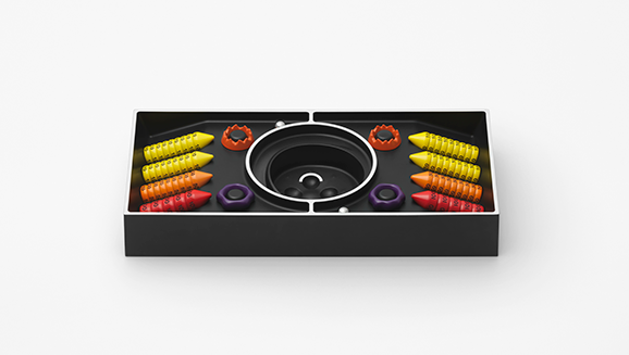 An official toolbox for storing stackable damage counters, Poison, Burn markers, metal orbs with a randomiser built inside.